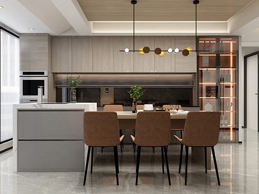 PET门板是一种高端环保饰面板,基材为颗粒板,欧松板或密度板,表面通过冷压工艺覆贴食品级PET膜,可选高光或肤感等质感。